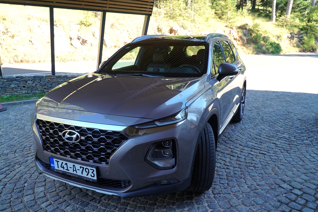 Vanjski dizajnPored upečatljive „Kaskadne Gril“ maske, prednjim dijelom dominira kompozitni dizajn svjetala, koji uključuje dnevna LED svjetla koja su postavljena iznad kućišta svjetala. Elegantne linije krova, te posebno naglašena linija koja se proteže od prednjih do stražnjih svjetala daju automobilu posebno dinamičan karakter. Jedinstvena stražnja svjetla i upečatljiv dizajn odbojnika upotpunjuju atletsku građu novog Santa Fe-a. Dužinom od 4770 mm, širinom od 1890 mm i međuosovinskim razmakom od 2765 mm, Santa Fe pruža maksimalnu udobnost za putnike.