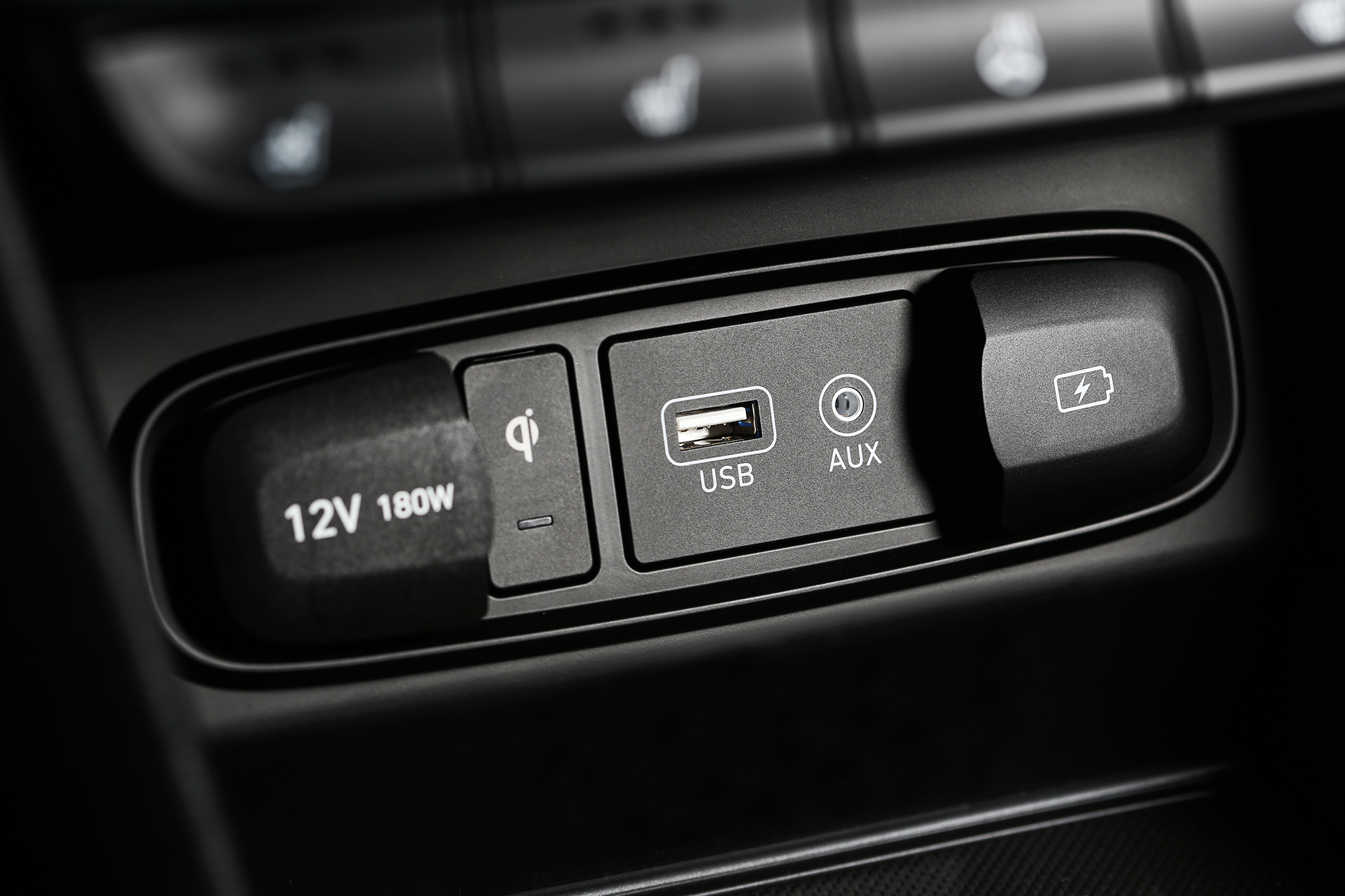 Bežično punjenje mobitelaKako bi baterije telefona putnika uvijek bili pune, Santa Fe nudi bežični jastučić za punjenje (Qi standard) za mobilne telefone. Status napunjenosti telefona signalizira se na malom indikatoru iznad. Kako telefon ne bi bio zaboravljen unutar automobila, središnji displej na ploči s instrumentima prikazuje podsjetnik prilikom gašenja motora. Santa Fe također dolazi standardno s USB priključkom i AUX utičnicom.